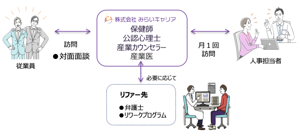 企業側からの悩みを踏まえて、カウンセリングを行ってもらえるので、スタッフのメンタル不調が改善してきました。