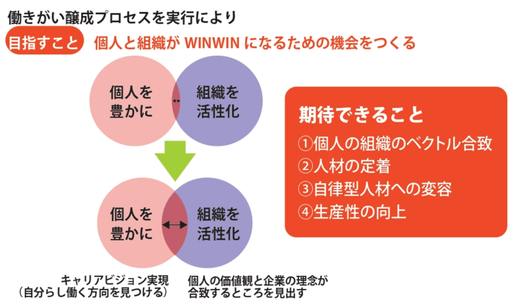 みらいキャリアでは、この働きがいを高める従業員の心理的5要素を元に働きがいの醸成プロセスを実践しています